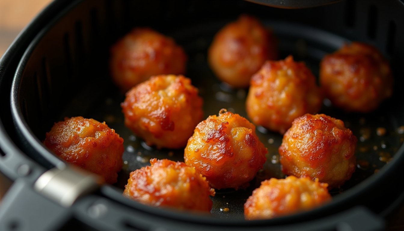 Step 6: Air fry at 400°F (200°C) for 10 minutes. Shake the basket or flip the meatballs halfway through for even browning.